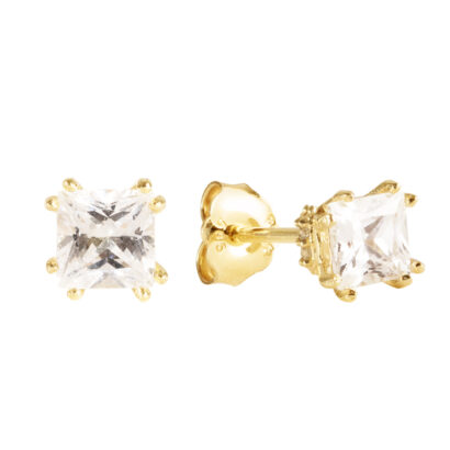 Χρυσά Σκουλαρίκια Καρφωτά Κ14 με Ζιργκόν Σε Σχήμα Τετράγωνο