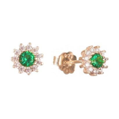 Καρφωτά σκουλαρίκια χρυσά με μαργαριτάρι στο κέντρο περιτριγυρισμένο απο μικρότερα ζιργκόν.Ιδανικά για μια κλασική σίκ εμφάνιση.