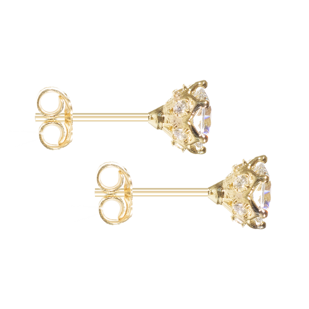 Καρφωτά σκουλαρίκια χρυσά με κεντρική λευκή πέτρα περιτριγυρισμένη από μικρότερα ζιργκόν. Ιδανικά για να στολίσετε τα αφτιά σας από το πρωί έως το βράδυ. Ένα μοντέρνο σχέδιο,όμορφο και εντυπωσιακό!