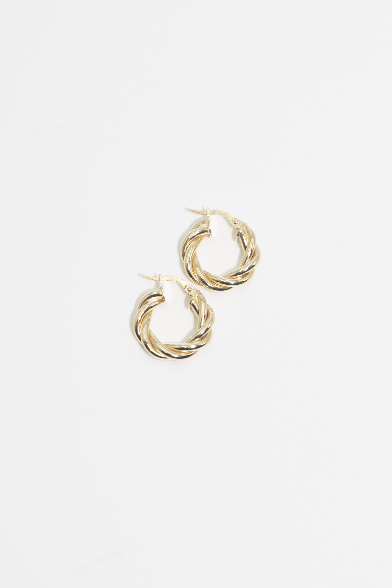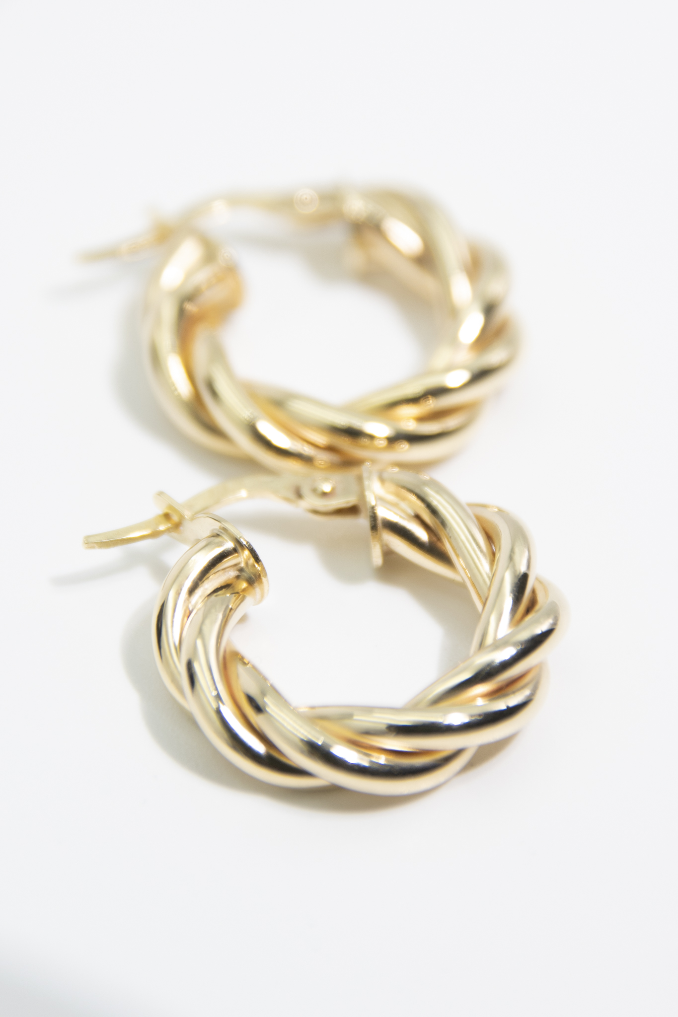 Χρυσά σκουλαρίκια δεκατεσσάρων καρατίων σε σχήμα πλεξούδας ιδανικά για να τα φοράς από το πρωί ως το βράδυ!
