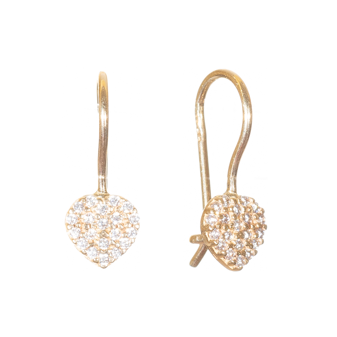Χρυσά Σκουλαρίκια Κρεμαστά Κ14 με Ζιργκόν Σε Σχήμα Καρδιά