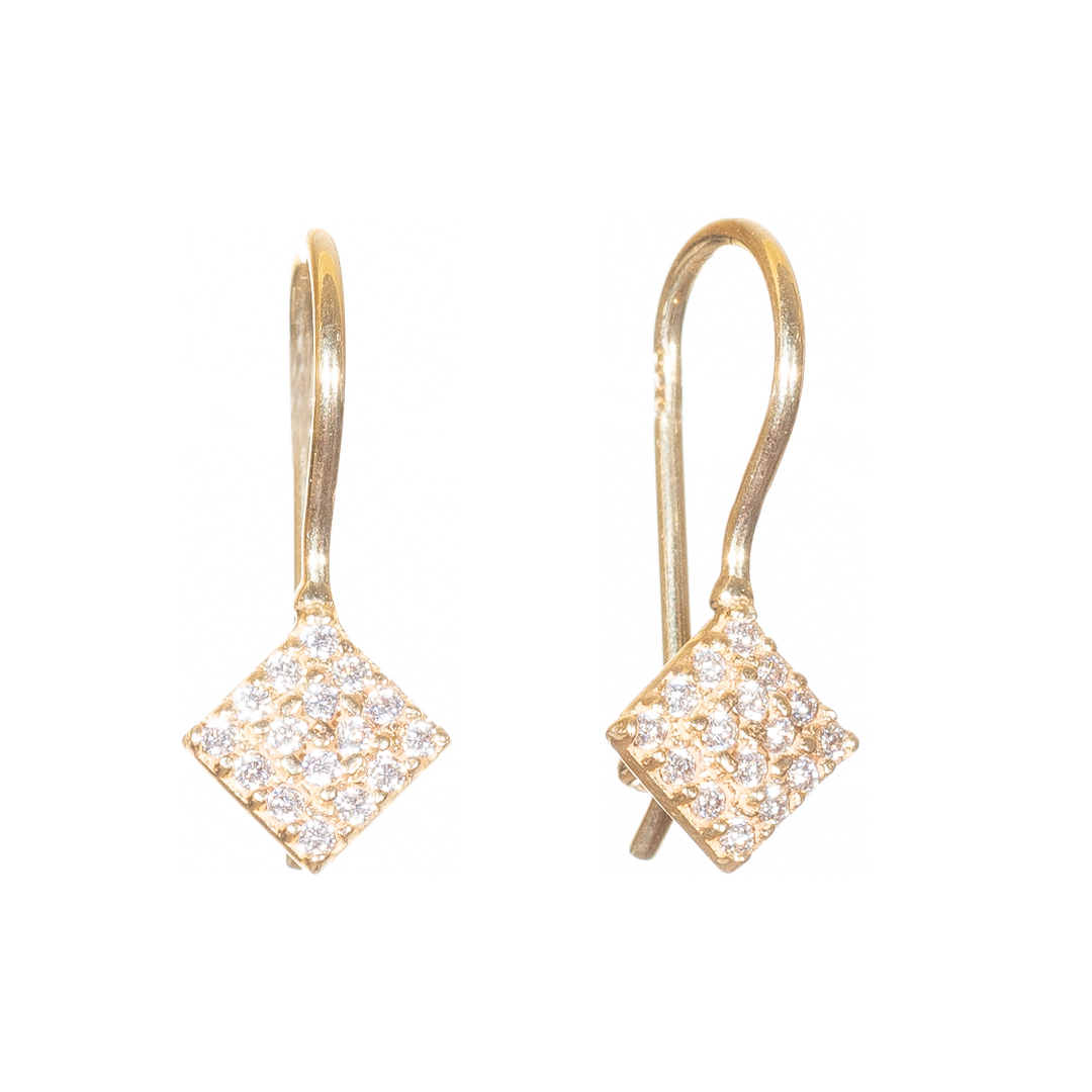 Χρυσά Σκουλαρίκια Κρεμαστά Κ14 με Ζιργκόν Σε Σχήμα Τετράγωνο