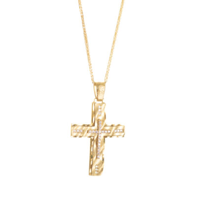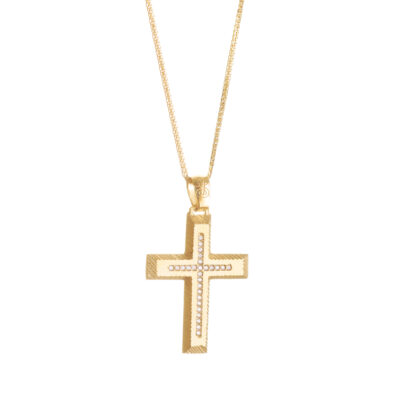 Ένα κομψό κόσμημα εμπνευσμένο από τη βυζαντινή τέχνη, κατασκευασμένο από χρυσό Κ14. Ο σταυρός διακοσμείται με πολύχρωμες πέτρες που προσδίδουν λάμψη και μοναδικό χαρακτήρα. Ο συνδυασμός του παραδοσιακού σχεδίου με τη σύγχρονη αισθητική το καθιστά ιδανικό για όσους θέλουν να φορούν ένα διαχρονικό σύμβολο με ξεχωριστή προσωπικότητα.