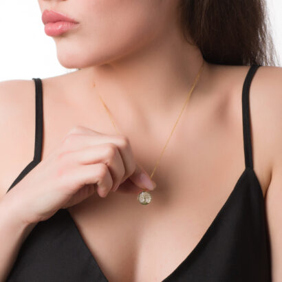 Χρυσό μενταγιόν δεκατεσσάρων καρατίων σε σχήμα ‘Το Δέντρο Της Ζωής’ σε ένα ιδιαίτερο σχέδιο. Το φοράς εύκολα από το πρωί ως το βραδύ. Είναι επίσης μια υπέροχη επιλογή δώρου για το αγαπημένο σου πρόσωπο. Η αλυσίδα της φωτογραφίας έχει τον κωδικό ‘ALG5’.